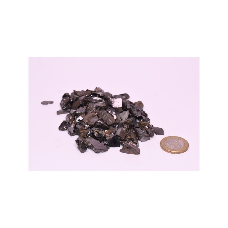 ya que solo 1% de la shungit encontrada en Carelia (Rusia) es critalizada ó elite.Es una piedra que tiende a desaparecer y solo quedan piezas pequeñas de unos 3X3 cm aproximadamente suele ser lo único que se encuentra de shungit cristalizada lo demás que encontramos en Rusia es shungit sin cristalizar ,las piezas critalizadas de más de 200g están solo en manos coleccionistas ó son muy caras por encima 1000€.
